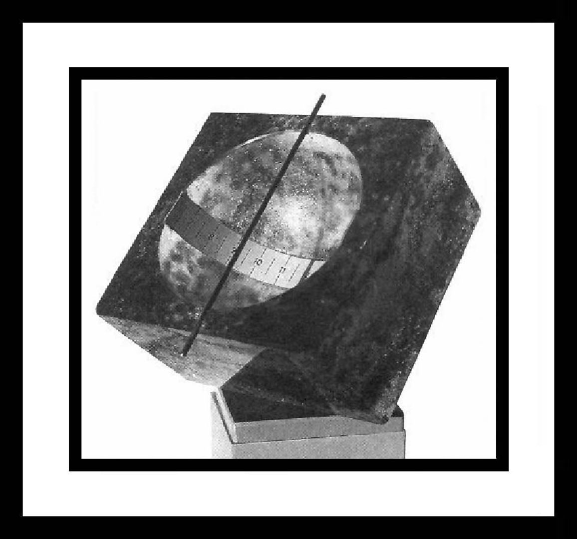 | Designer & Maker: Mr. Iwan Kahn, Swiss member of the German Society of Chronometry Date: unknown exactly, late 1900s Original Location: Was made in either Wallisellen or Dietlikon Switzerland (both places are near Zurich). Present Location: unknown Orientation: polar axis equatorial-type dial. Adjustable for any latitude Size: Diameter of the glass ball approximately 15 cm (6 in). Weighs several kilograms. Adornment: none Inscriptions: none Mottos: none Condition: unknown Comments: A table-top sundial. The glass ball focuses the sunlight on the concentric glass half-ring with annealed numerals that surround it. This light spot moves along the time scale depending on the position of the sun, and so serves as a time pointer. The metal parts are for aligning the sundial towards the south and according to longitude and latitude. The sundial is built on a glass base. Kahn's Brochure on his Garden Sundials: Here Kahn's Article: Here Iwan Kahn’s Website: Here Iwan Kahn’s Handout: Here Iwan Kahn’s Email: Here Photo Descriptions: Photo ‘a’ is courtesy of Iwan Kahn; photo ‘b’ is copied from Kahn's article. Photos: a b |